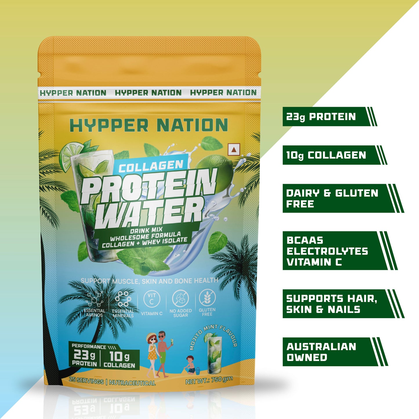 HYPPERNATION PROTEIN WATER + COLLAGEN: MOJITO MINT - 750 GRAM (25 SERVINGS)